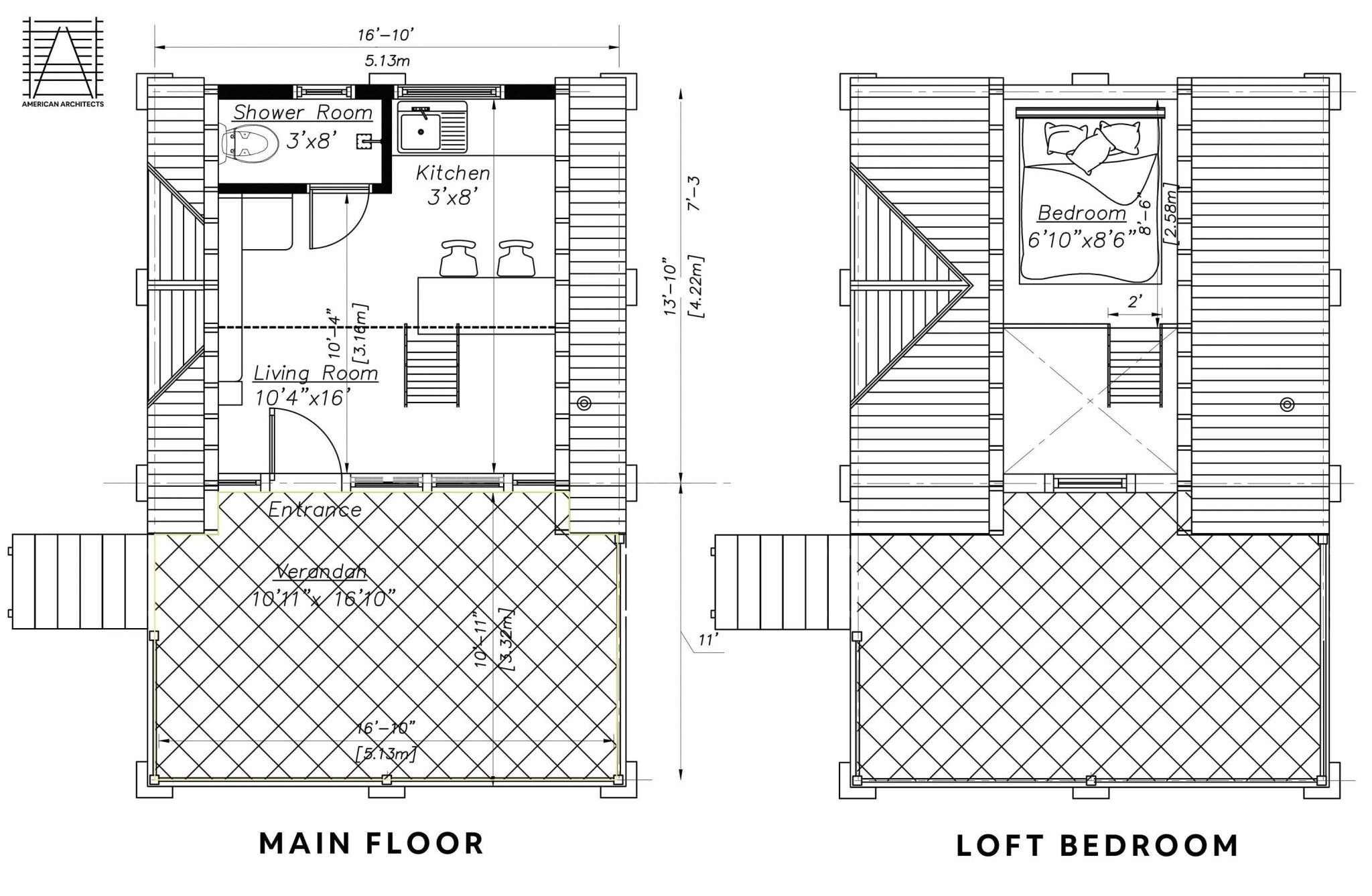This architect-designed A-frame cabin combines timeless charm with modern practicality in its 280 sq ft layout. The lofted bedroom offers a peaceful retreat, while the open-plan living space maximizes functionality with a smart kitchen, compact shower room and flexible living space. Step out onto the generous 11' x 16'10 terrace, perfect for morning coffee or evening relaxation.